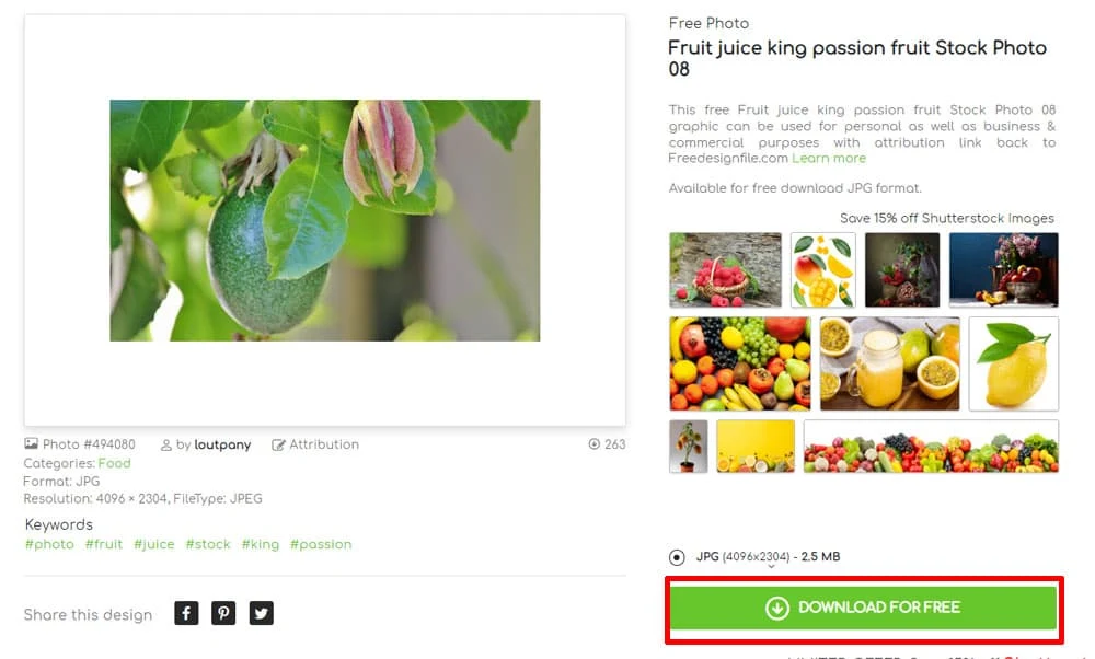 搜尋結果出現以後,就選擇一張你喜歡的圖片,直接進入圖片的頁面,在右側欄位會有一個Free Download按鈕,這邊就可以下載到本機電腦上了,之後就進入後續的編輯了。